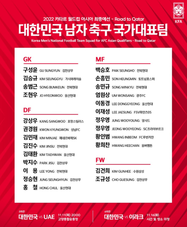 축구대표팀 명단
